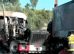 Choque e incendio de dos tráileres deja un fallecido en la vía Alóag–Santo Domingo